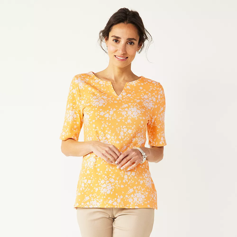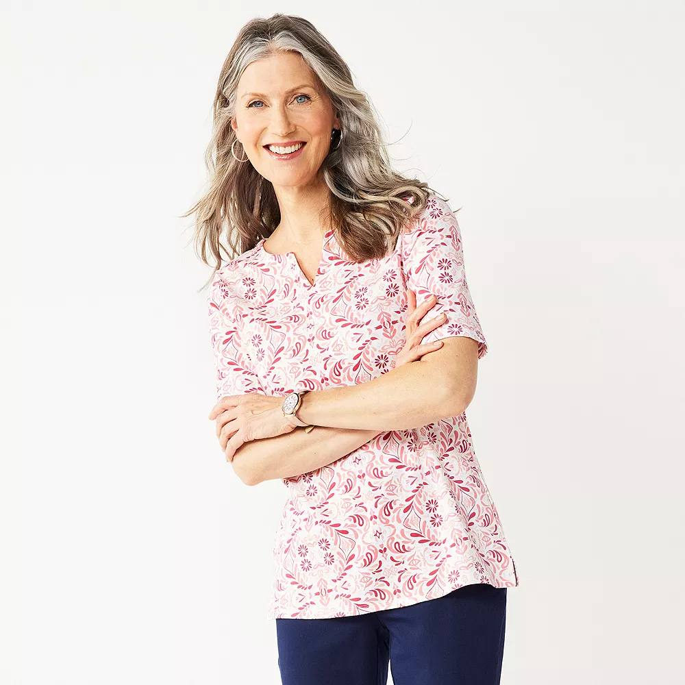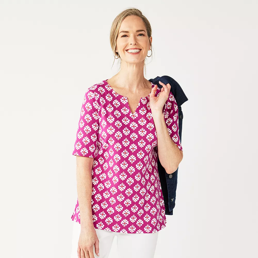You’ll love the easy spring style of this petites’ splitneck top by Croft & Barrow.