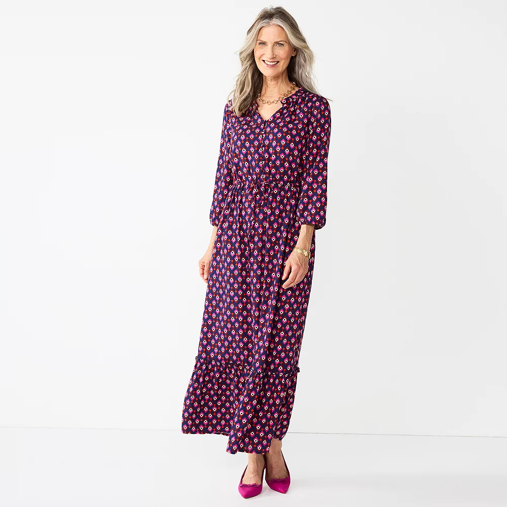 Flowy and flirty, this women’s ruffle print maxi dress from Croft & Barrow is the perfect addition to any wardrobe!