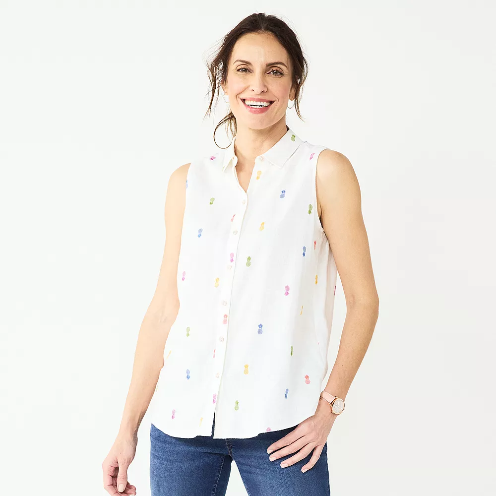 Welcome summer weather in this petites’ linen blend tank top from Croft & Barrow.