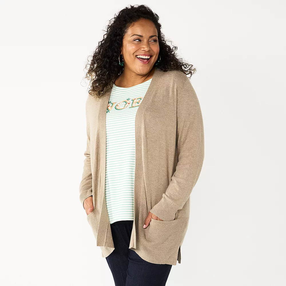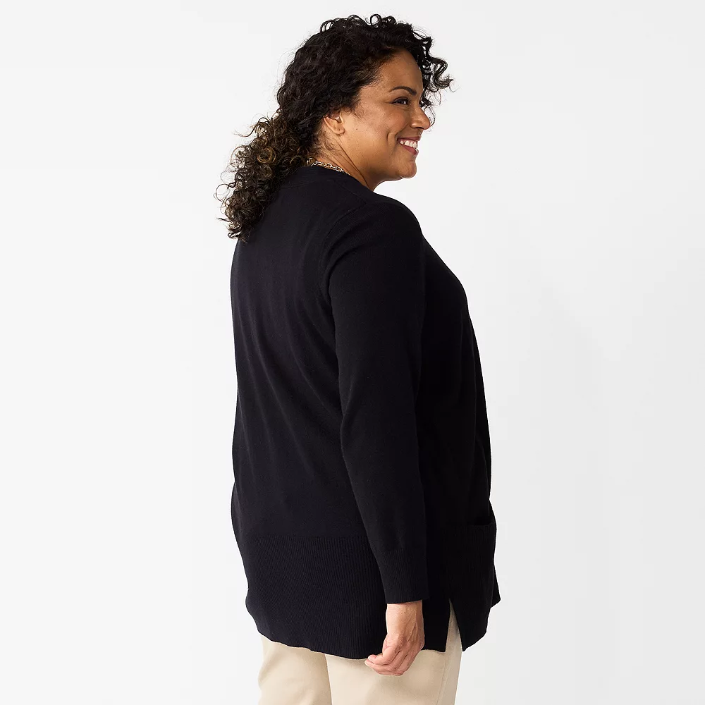 Plus Size Croft & Barrow® Classic Ribbed Open-Front Cardigan