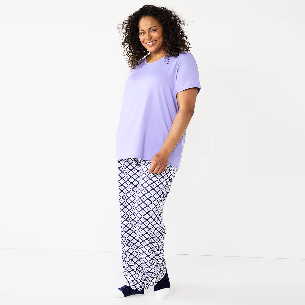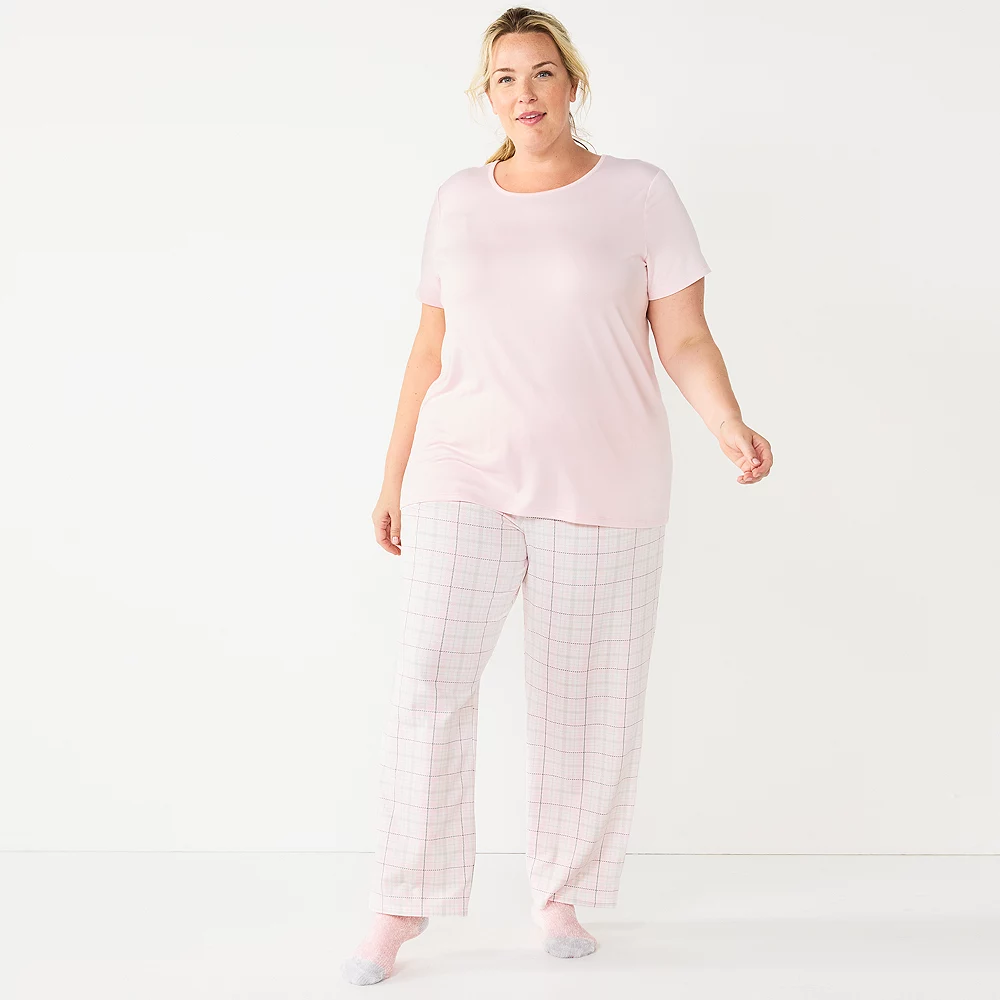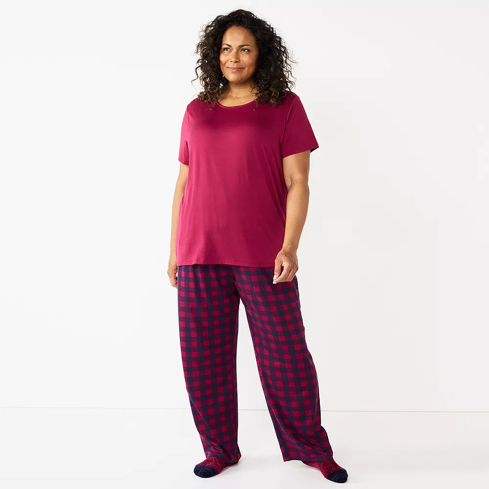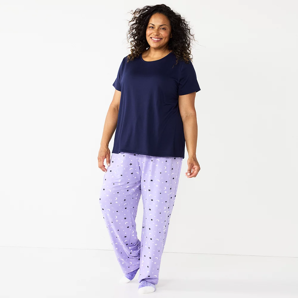 Coordinating and cozy, this women’s Croft & Barrow short sleeve pajama top and pajama pants sleep set will have you drifting off in complete comfort.