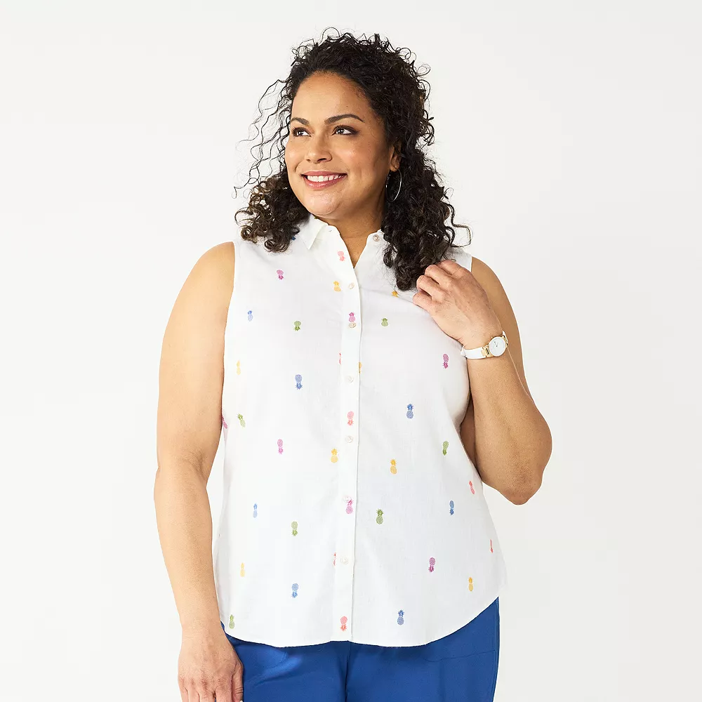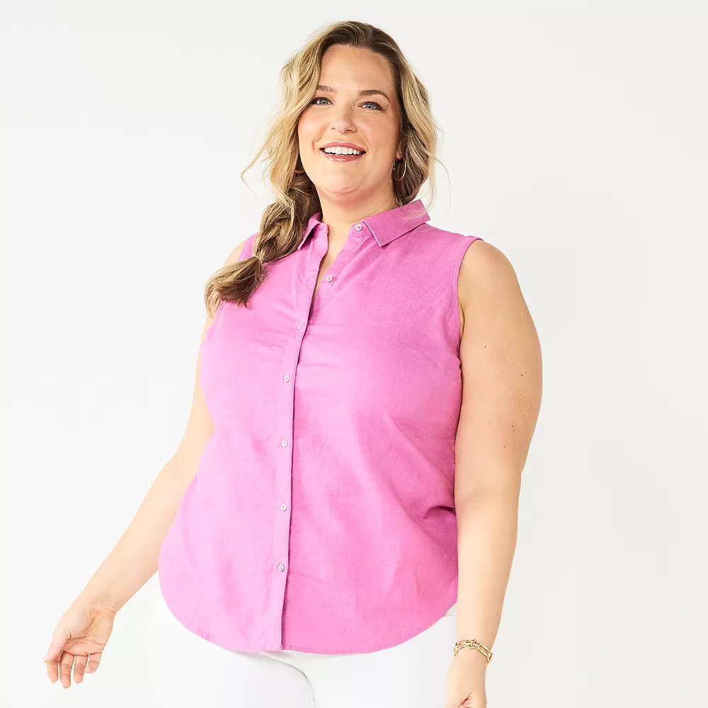 Welcome summer weather in this women’s linen blend tank top from Croft & Barrow.
