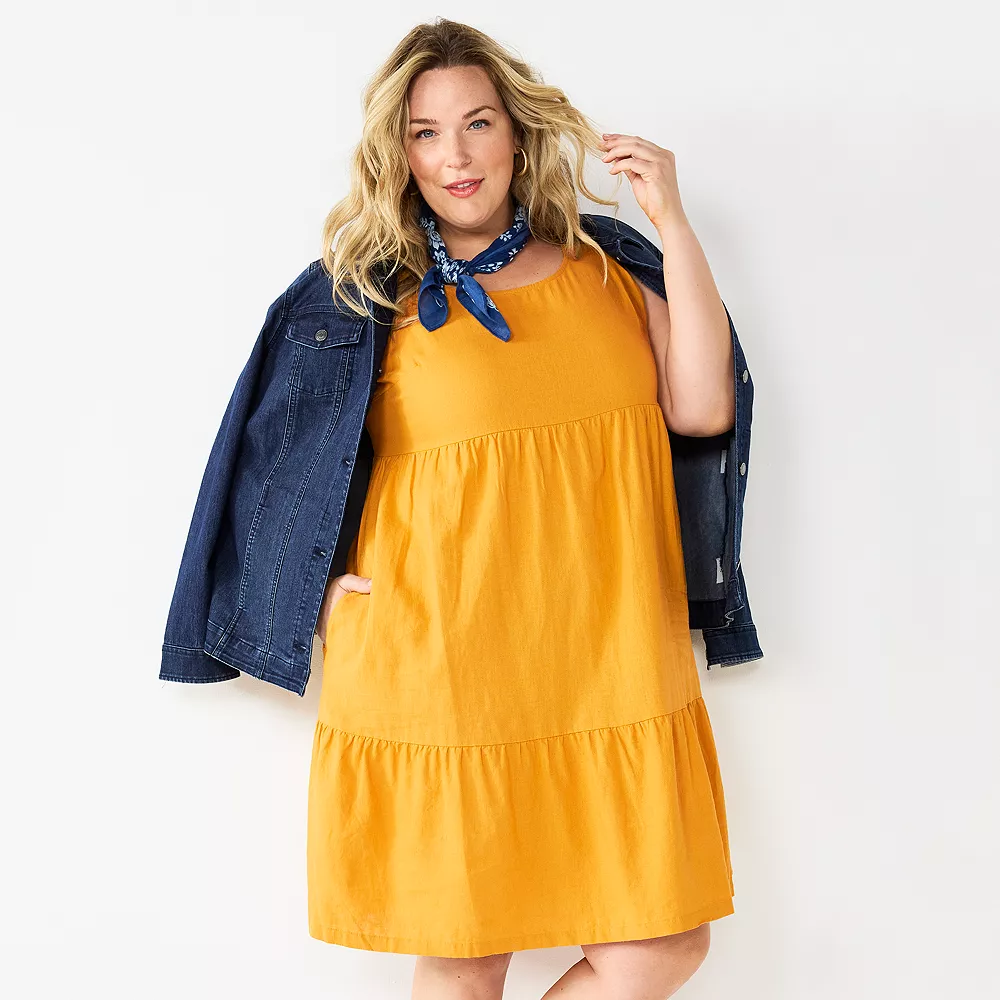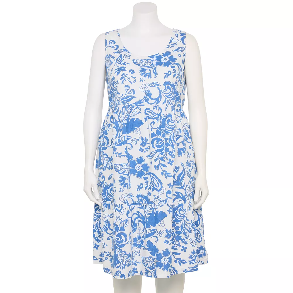 A tiered skirt, linen blend and fllowy fit make this women’s Croft & Barrow dress the perfect summer choice.