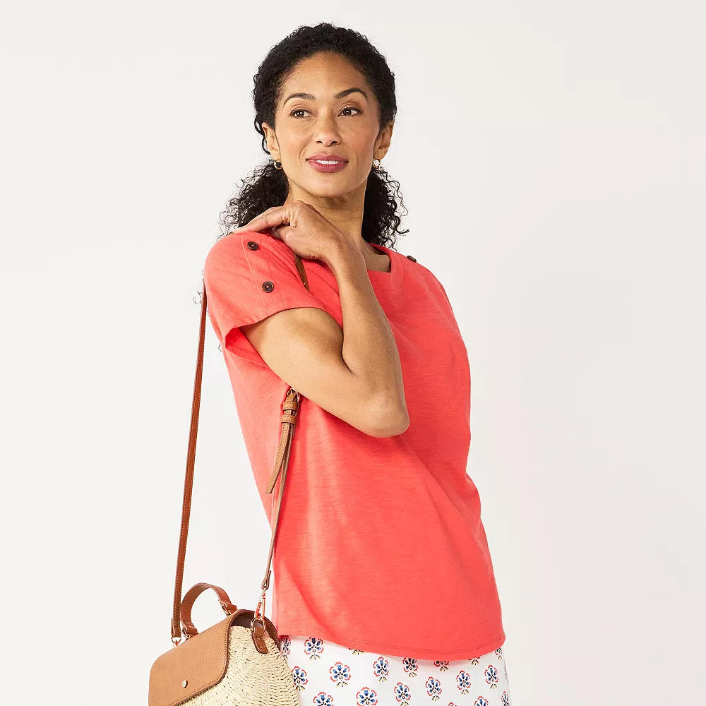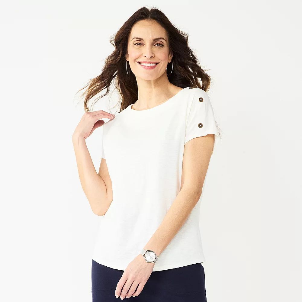 Button accents add a stylish touch to this women’s Croft & Barrow tee.
