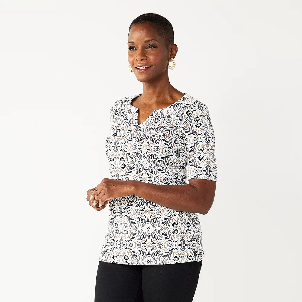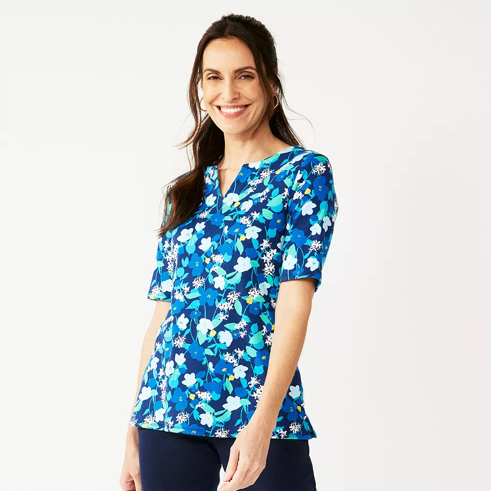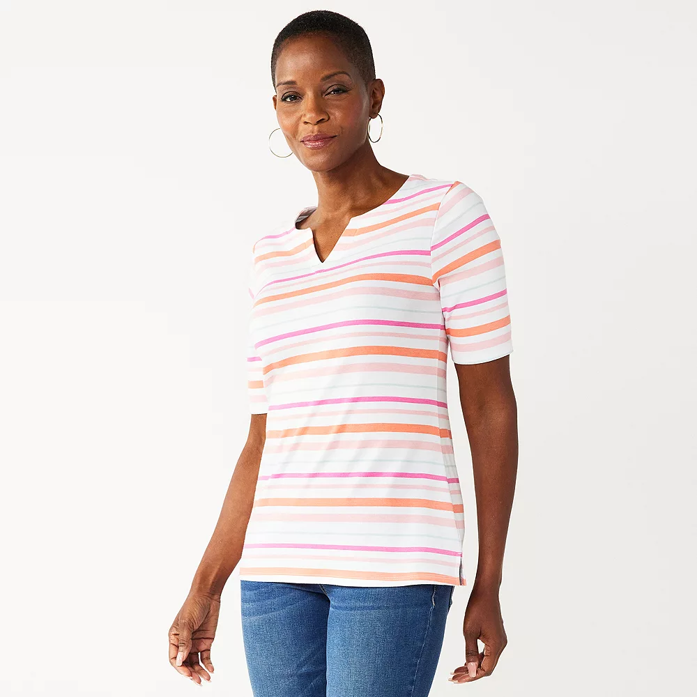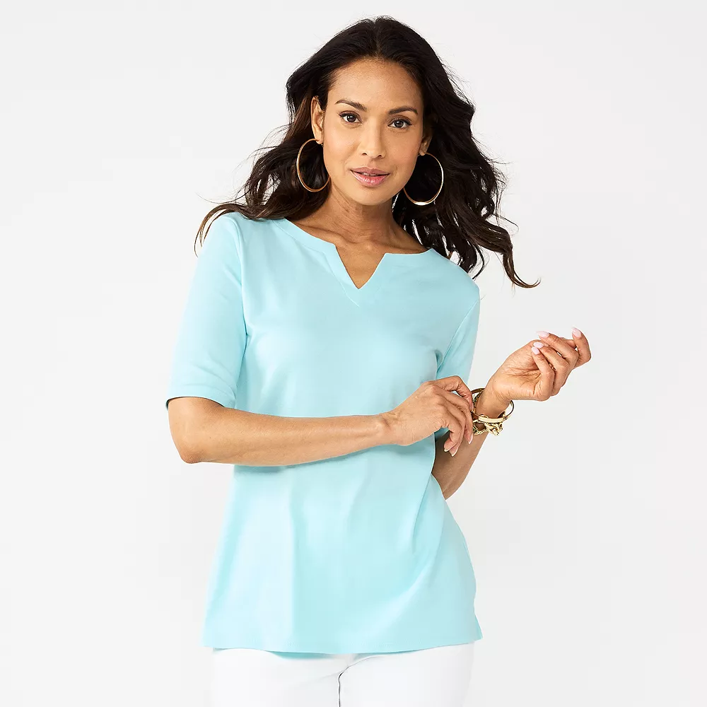 Upgrade your casual essentials with this women’s Croft & Barrow splitneck tee.