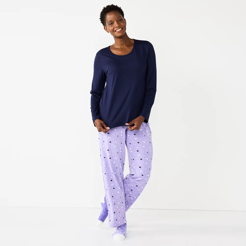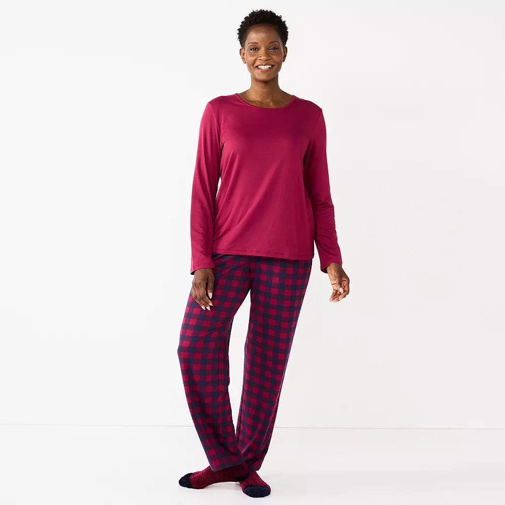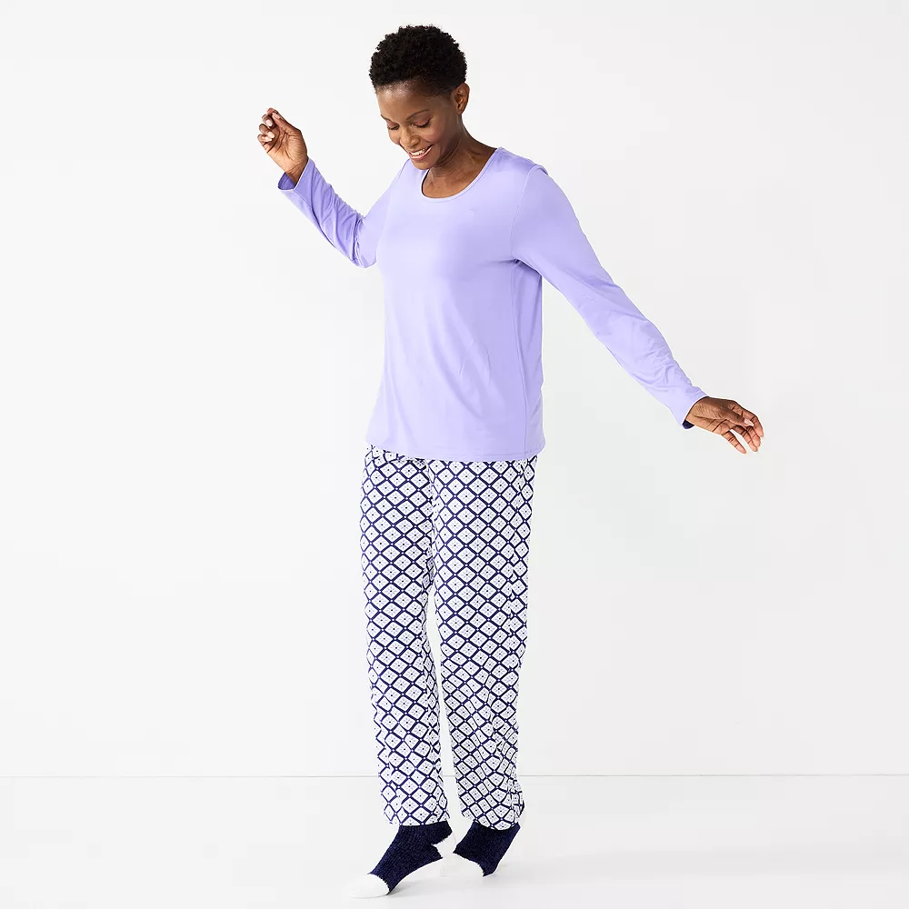 Featuring a cozy construction, this women’s Croft & Barrow pajama set will give you continuous comfort all night long.