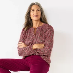 Laid-back yet polished, you’ll love the way you look in this women’s Croft & Barrow smocked peasant top.